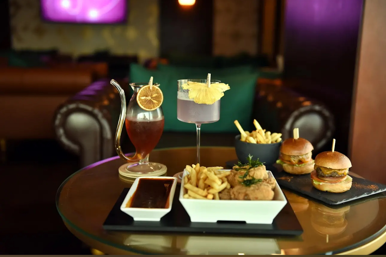 تتوفر مجموعة منتقاة من أفخر أنواع السيجار العالمي، مقدّمة في صوانٍ أنيقة، إلى جانب مشروبات فاخرة تضيف لمسة من الذوق الرفيع إلى جلستك.