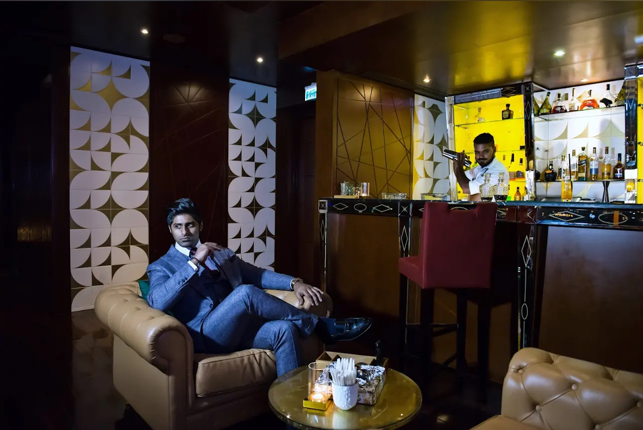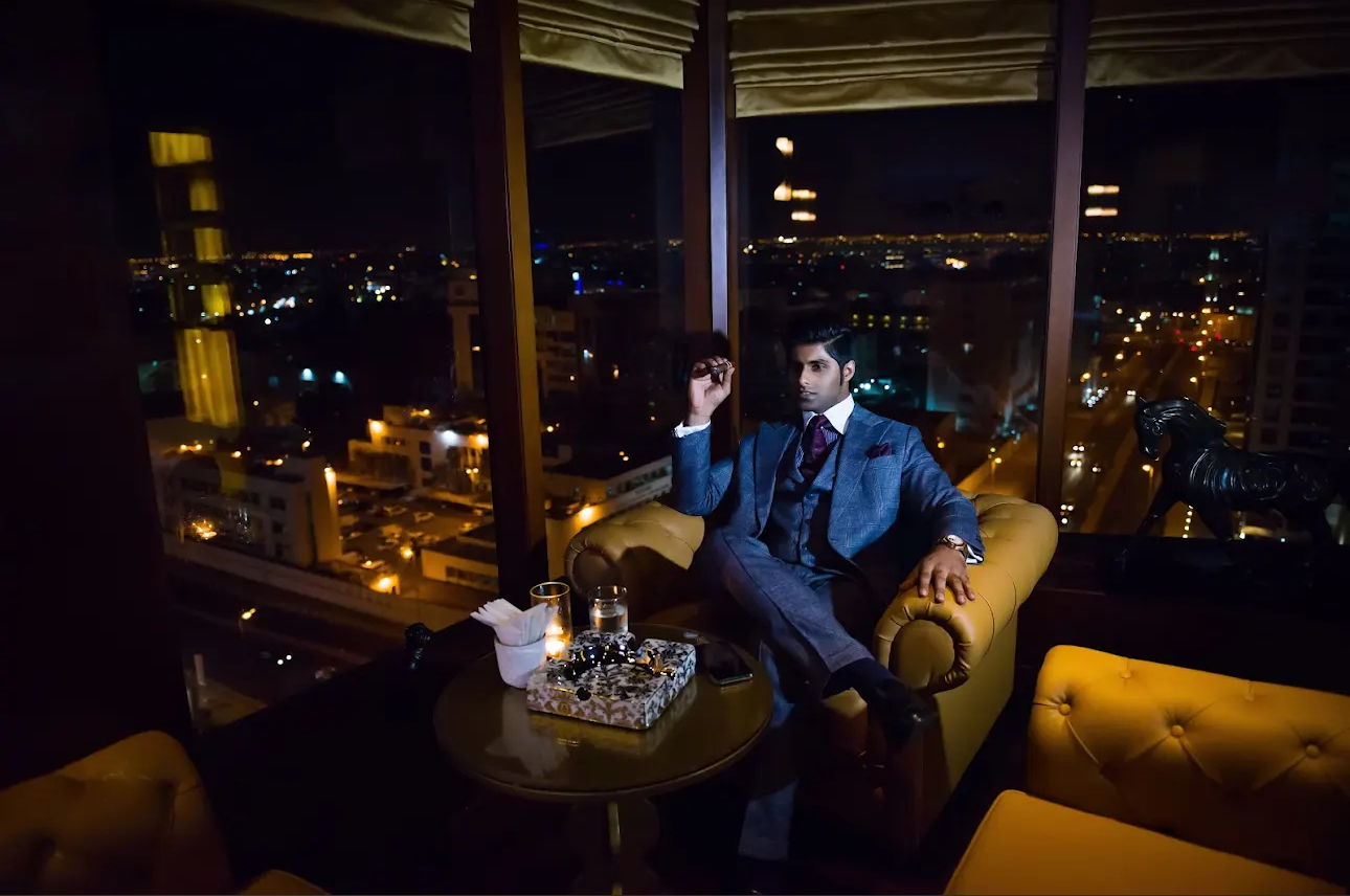 بمجرد دخولك، تستقبلك أجواء مترفة بديكور يجمع بين الكلاسيكية العصرية والدفء الملكي. الأرائك الجلدية الفاخرة، الأرضيات الخشبية اللامعة، والإضاءة الخافتة كلها عناصر صُممت لتمنحك تجربة استرخاء لا تُنسى.